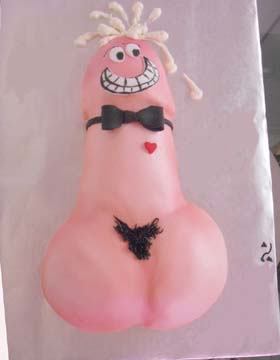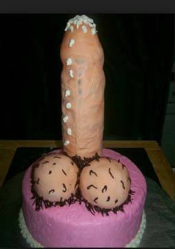 gift wrapped stand up adult dick poping out of cake